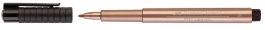 Tuschestift PITT® ARTIST PEN. Ausführung: Rundspitze. Art der Schreibflüssigkeit: Künstlertusche, wasserfest. Material des Schaftes: Kunststoff. Clip vorhanden. Kappe umsteckbar. PITT artist pen für Skizzen, Studien und Tuschezeichnungen. Tusche mit höchster Lichtbeständigkeit und Wasserfestigkeit. Lange Lebensdauer und hoher Komfort. Wasserfeste Zeichentusche. Farbe des Schaftes: kupfer metallic. Strichstärke: 1,5 mm. Schreibfarbe von Schreibgeräten: kupfer metallic.